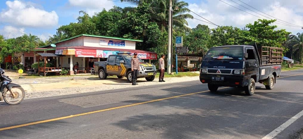 Patroli dipimpin oleh dua personel Polsek, yaitu AIPDA Roni Candra R. dan AIPDA Nurkamal, menyasar Jalur Lintas Timur di Kecamatan Pangkalan Lesung, Kabupaten Pelalawan.