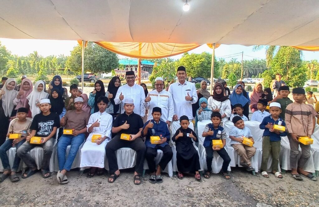 Kota Langsa – memperingati Malam Nuzulul Quran 1447 H/2026 M, PT Perkebunan Nusantara (PTPN) IV Regional VI menyantuni seratus anak yatim dan mendengarkan tausiyah di Wisma Meuligoe Nusantara, Gampong Pondok Kelapa, Kecamatan Langsa Baro, Senin (9/3/2026).