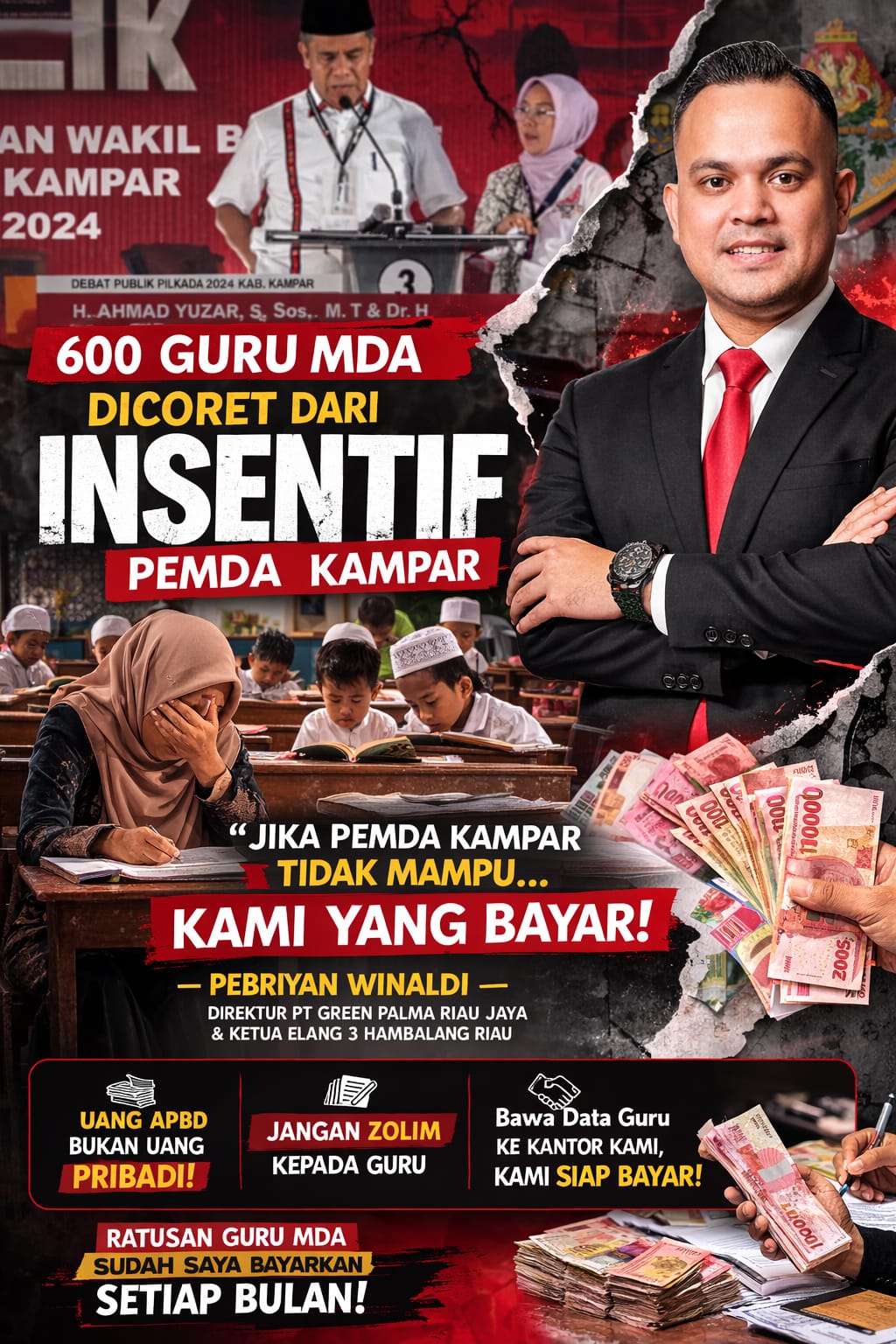 A1news.co.id | RIAU ||Selasa, 10 Maret 2026. Dengan beredarnya pemberitaan dari media Sapanusantara.com dengan judul “600 Guru MDA di Kampar Dicoret dari Penerima Insentif 2026, Janji Kesejahteraan Saat Pilkada Dipertanyakan”