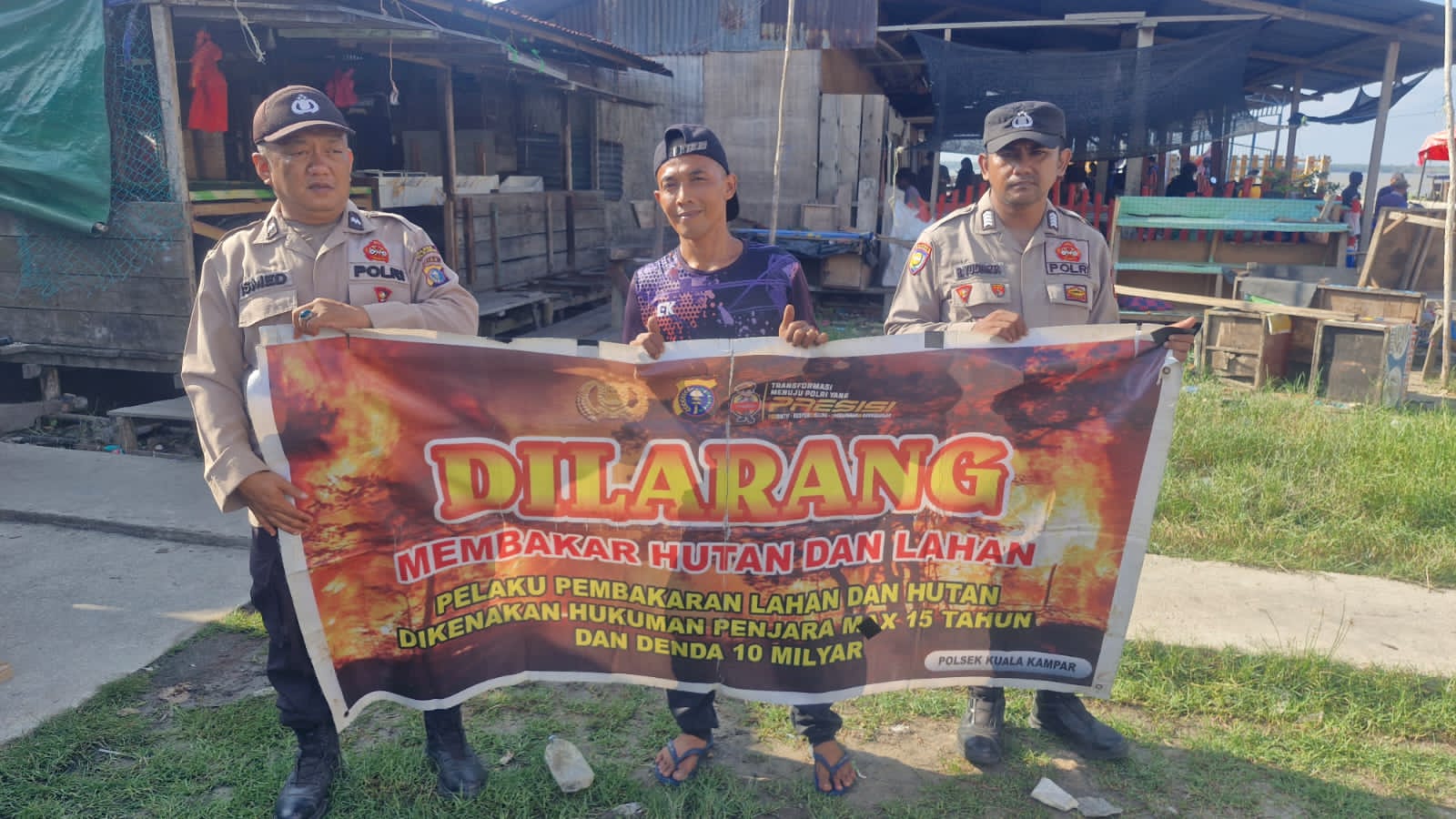 A1news.co.id | RIAU ||Polsek Kuala Kampar melaksanakan kegiatan sosialisasi dan penyebaran Maklumat Kapolda Riau terkait antisipasi kebakaran hutan dan lahan (karhutla) kepada masyarakat Kecamatan Kuala Kampar, Senin (16/3/2026).