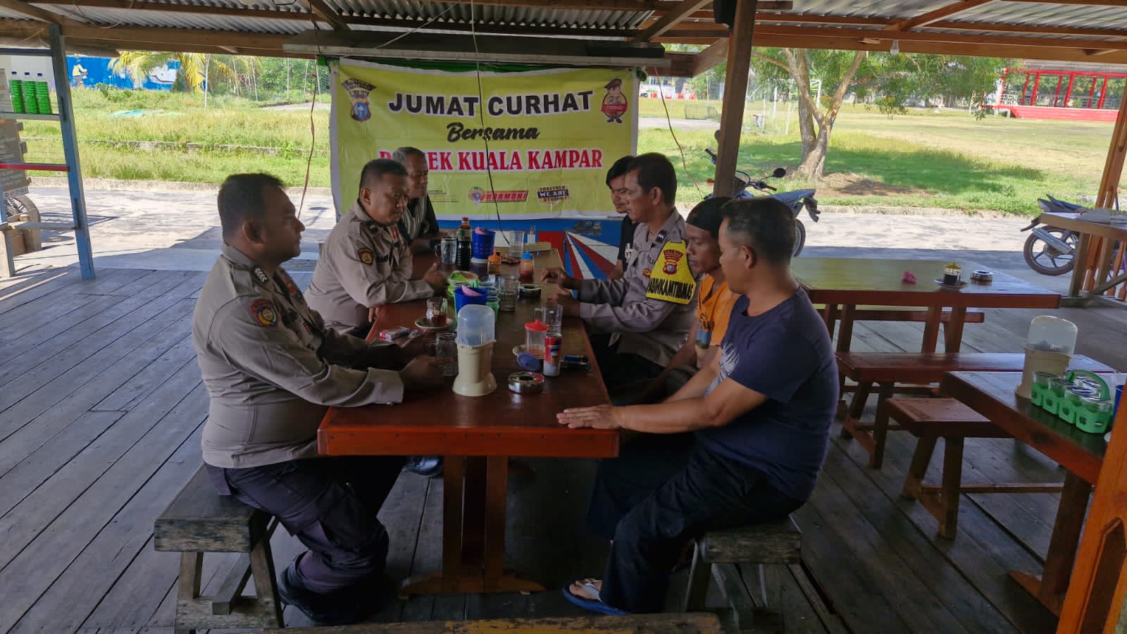 A1news.co.id | RIAU ||Polsek Kuala Kampar kembali menggelar program Jumat Curhat sebagai sarana menyerap aspirasi masyarakat. Kegiatan ini dilaksanakan pada Jumat (27/3/2026) sekitar pukul 09.40 WIB di Warung Harian Edi, Kelurahan Teluk Dalam, Kecamatan Kuala Kampar, Kabupaten Pelalawan.