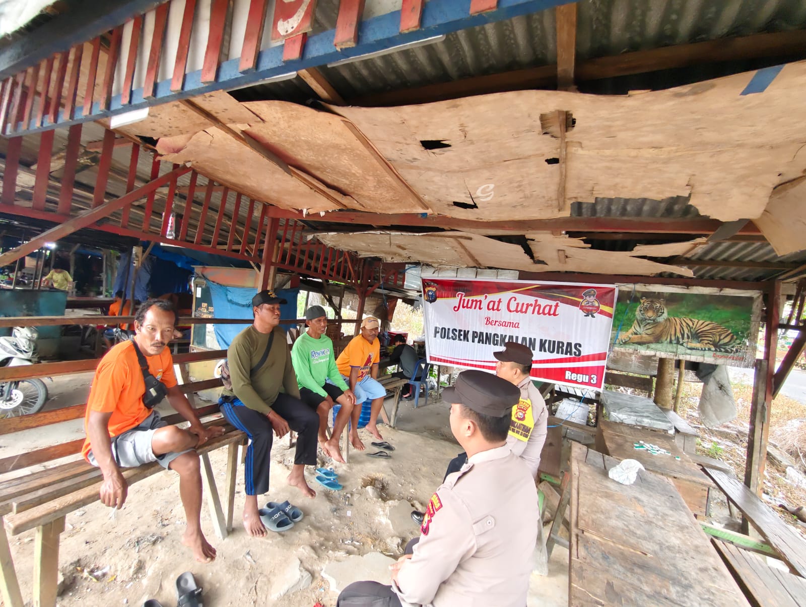 A1news.co.id | RIAU ||Polsek Pangkalan Kuras menggelar kegiatan Jumat Curhat sebagai wadah komunikasi antara polisi dan masyarakat, Jumat (27/3/2026) sekitar pukul 09.00 WIB. Kegiatan ini berlangsung di kedai milik Situmorang di Pasar Baru, Kelurahan Sorek Satu, Kecamatan Pangkalan Kuras, Kabupaten Pelalawan.