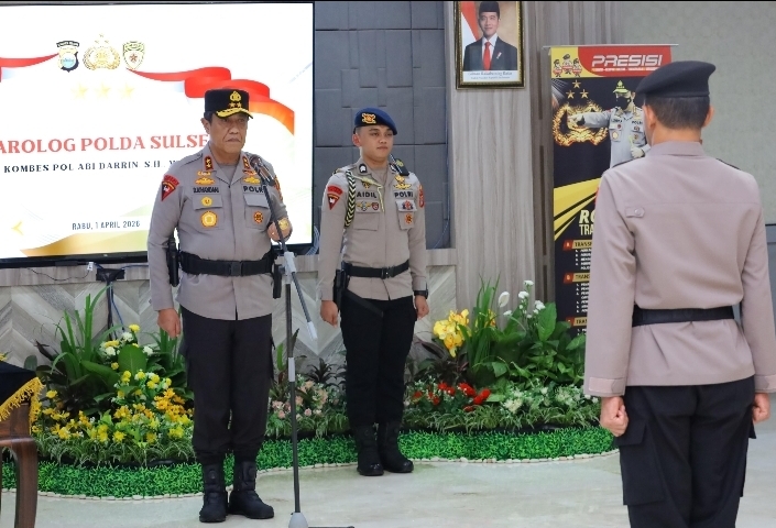 Penyerahan jabatan Karolog Polda Sulsel Kombes Pol. Abi Darrin, S.H., M.H., yang memasuki masa purna tugas, setelah mengabdikan diri dengan penuh dedikasi dan loyalitas dalam institusi Polri, khususnya di lingkungan Polda Sulawesi Selatan.