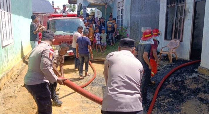 A1news.co.id|Aceh Singkil – Aksi cepat personel kepolisian bersama tim pemadam kebakaran dan masyarakat berhasil memadamkan kebakaran yang melanda satu unit rumah warga di Desa Tulaan, Kecamatan Gunung Meriah, Kabupaten Aceh Singkil, Selasa (31/3).