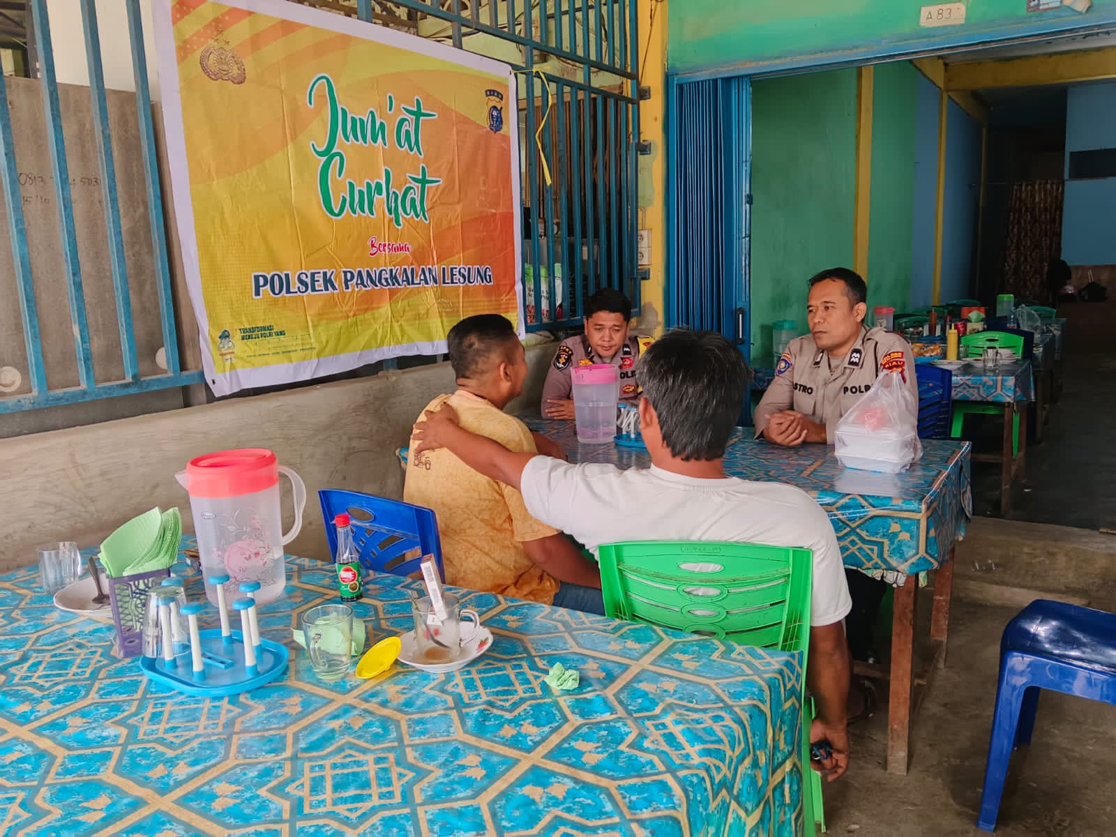 A1news.co.id | RIAU ||Kepolisian Sektor Pangkalan Lesung menggelar kegiatan Jumat Curhat pada Jumat, 3 April 2026, di Warung Wirda, Kelurahan Pangkalan Lesung, Kabupaten Pelalawan. Kegiatan ini menjadi wadah dialog langsung antara polisi dan masyarakat terkait pelayanan publik serta situasi keamanan dan ketertiban masyarakat (kamtibmas).