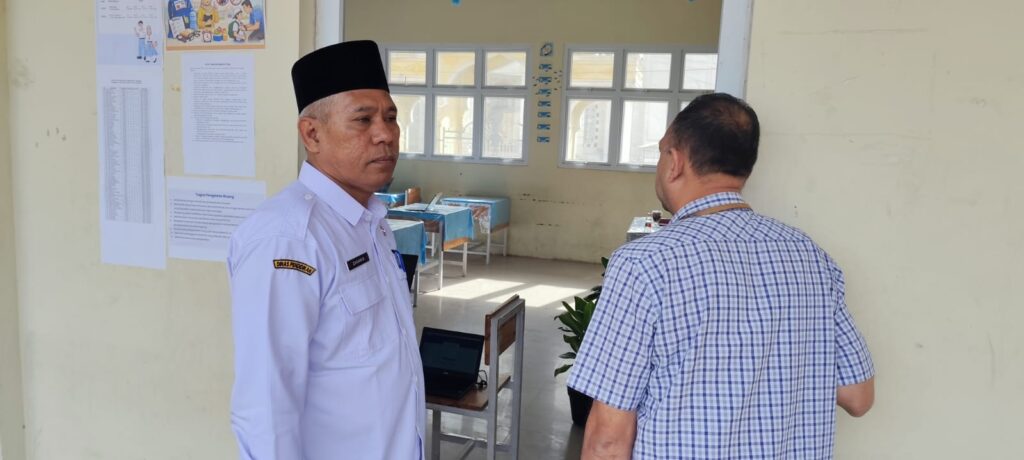 A1news.co.id|Takengon – Kepala Sekolah Zakaria S.Pd dampingi Tim BPMP(Balai Penjamin Mutu Pendidikan) Provinsi Aceh saat melakukan monitoring Tes Kemampuan Akademik (TKA) di SMPN 1 Takengon.