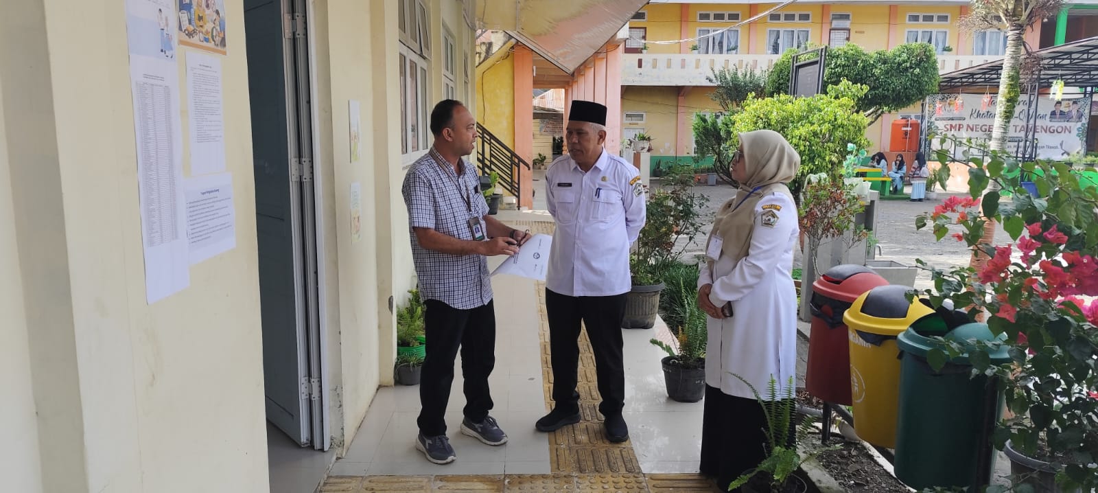 A1news.co.id|Takengon – Kepala Sekolah Zakaria S.Pd dampingi Tim BPMP(Balai Penjamin Mutu Pendidikan) Provinsi Aceh saat melakukan monitoring Tes Kemampuan Akademik (TKA) di SMPN 1 Takengon.