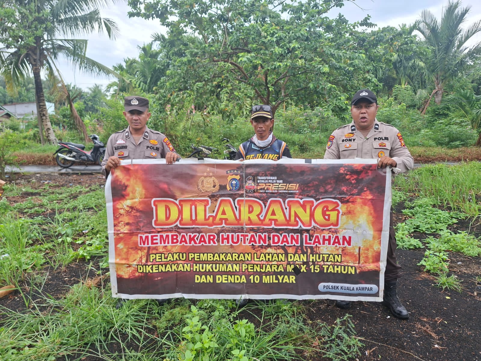 A1news.co.id | RIAU ||Kepolisian Sektor Kuala Kampar melaksanakan kegiatan sosialisasi dan penyebaran maklumat Kapolda Riau terkait larangan membuka hutan dan lahan dengan cara membakar, sebagai upaya pencegahan kebakaran hutan dan lahan (karhutla), Sabtu (11/4/2026) pukul 10.00 WIB.