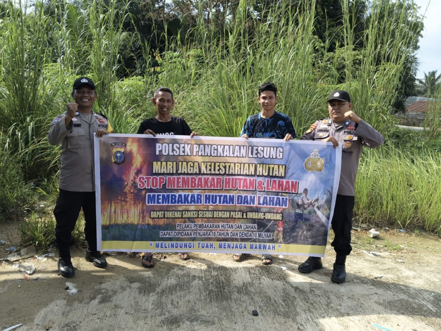 A1news.co.id | RIAU ||Personel Polsek Pangkalan Lesung melaksanakan patroli daerah rawan kebakaran hutan dan lahan (karhutla) sekaligus sosialisasi Maklumat Kapolda Riau tentang larangan membuka lahan dengan cara membakar kepada masyarakat di Kelurahan Pangkalan Lesung, Kecamatan Pangkalan Lesung, Kabupaten Pelalawan, Selasa (14/4/2026) pukul 10.00–11.00 WIB.