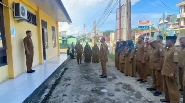 Penegasan tersebut disampaikan Jepri, melalui kegiatan apel pagi rutin di lingkungan Sekretariat Kecamatan Simpang Kanan, kemarin Senin, 13 April 2026.