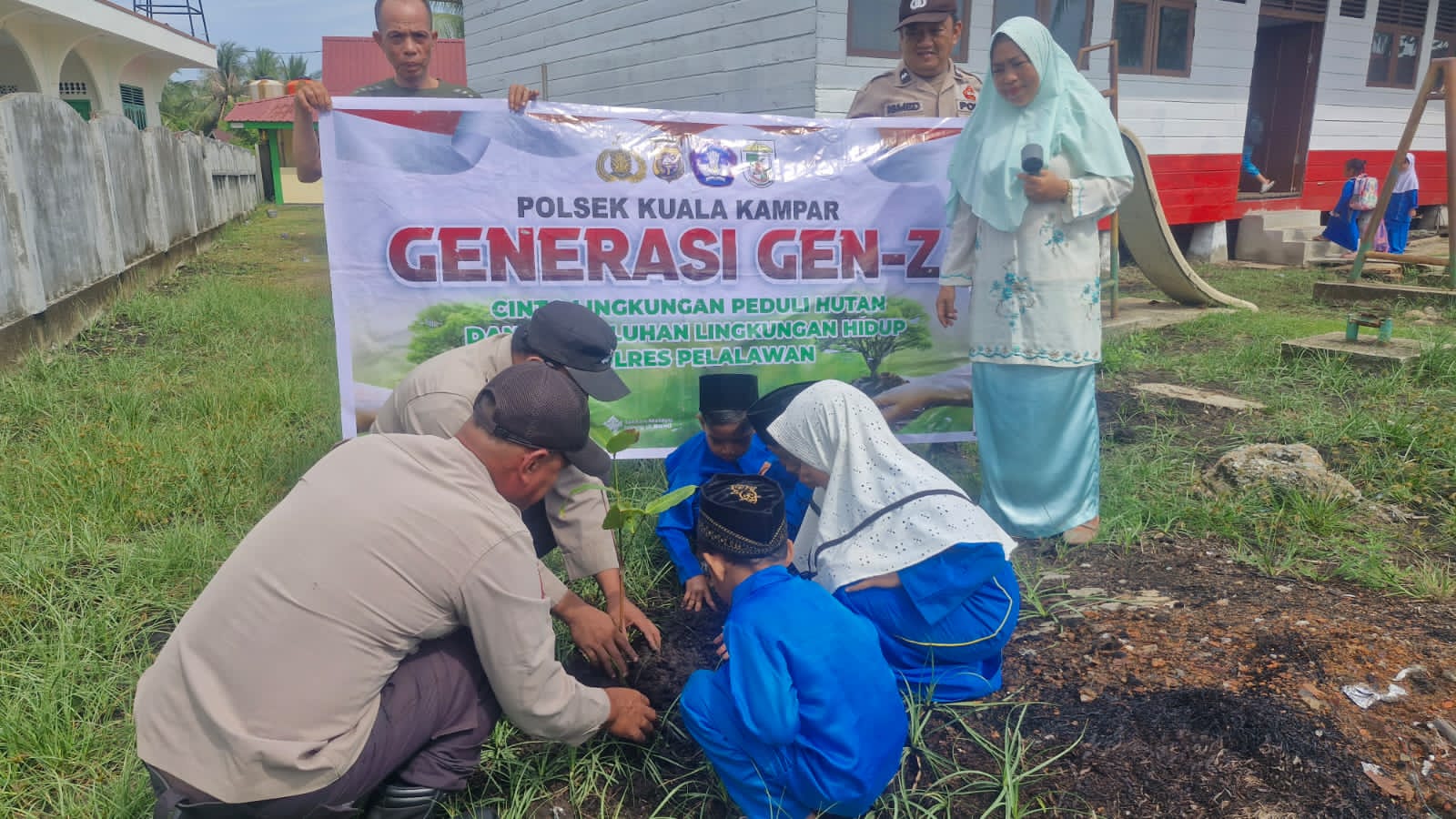 Kegiatan berlangsung sekitar pukul 09.45 WIB di TK Tunas Baru, Teluk Dalam, Kecamatan Kuala Kampar. Penanaman pohon ini melibatkan personel kepolisian, guru, serta murid sekolah setempat.