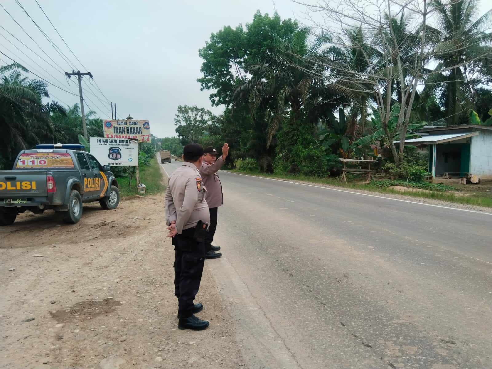 A1news.co.id | RIAU ||Kepolisian Sektor (Polsek) Pangkalan Lesung, jajaran Polres Pelalawan, melaksanakan kegiatan pengaturan lalu lintas dan patroli rutin di wilayah rawan kecelakaan serta pelanggaran lalu lintas di Jalan Lintas Timur, Kecamatan Pangkalan Lesung, Kabupaten Pelalawan, Senin, 20 April 2026.