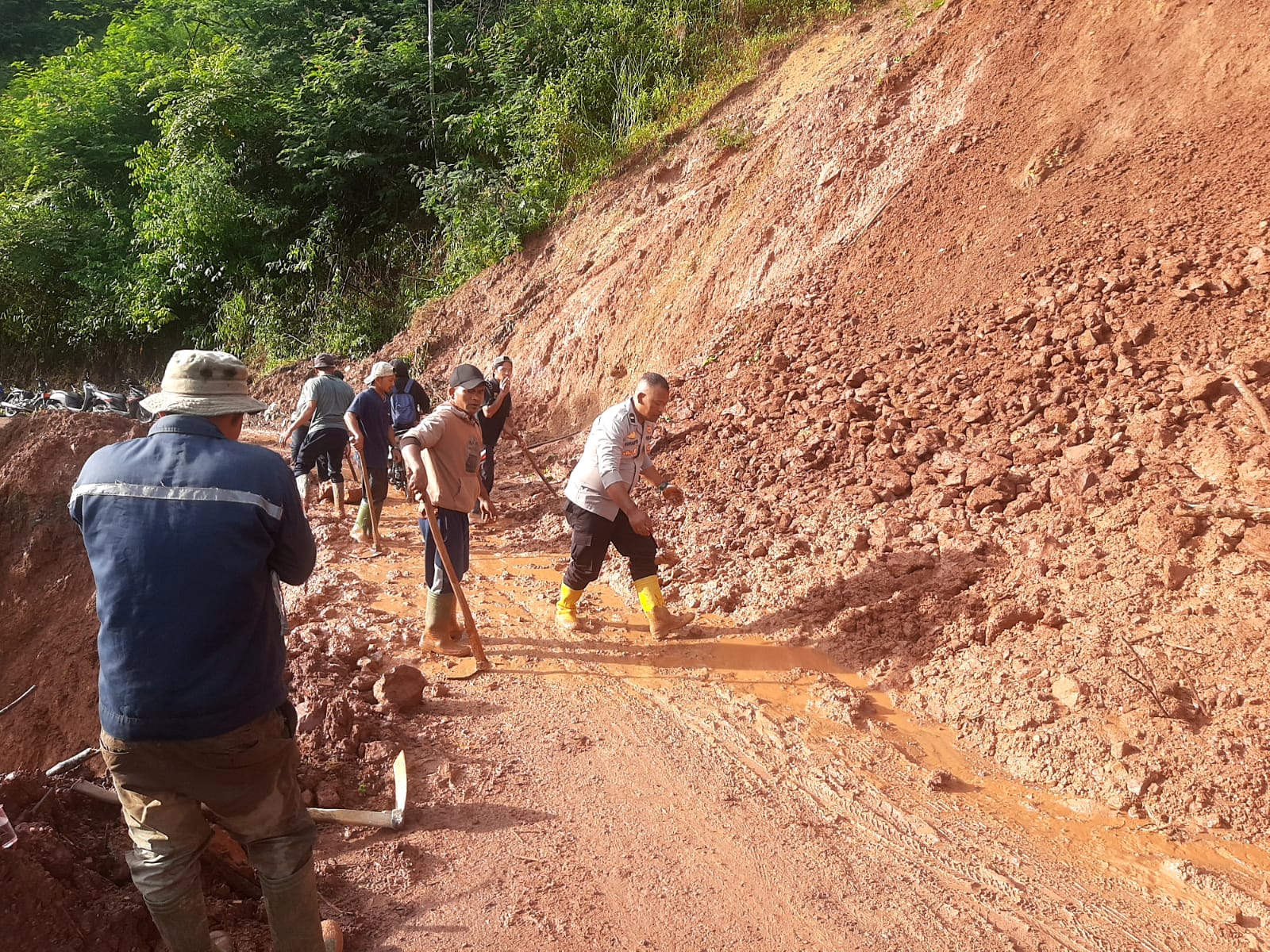 Merespons kondisi itu, personel Polsubsektor Rusip Antara bersama warga setempat langsung bergerak melakukan pembersihan material longsor sejak pukul 07.00 WIB. Gotong royong difokuskan pada pembukaan badan jalan agar dapat segera dilalui kendaraan, baik roda dua maupun roda empat.