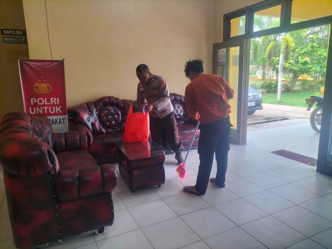 Kegiatan yang dimulai sekira pukul 08.35 WIB itu diikuti oleh seluruh personel Polsek Ukui. Mereka tampak kompak melaksanakan korve dengan membersihkan setiap ruangan, mulai dari ruang pelayanan, ruang kerja, hingga area sekitar mako.