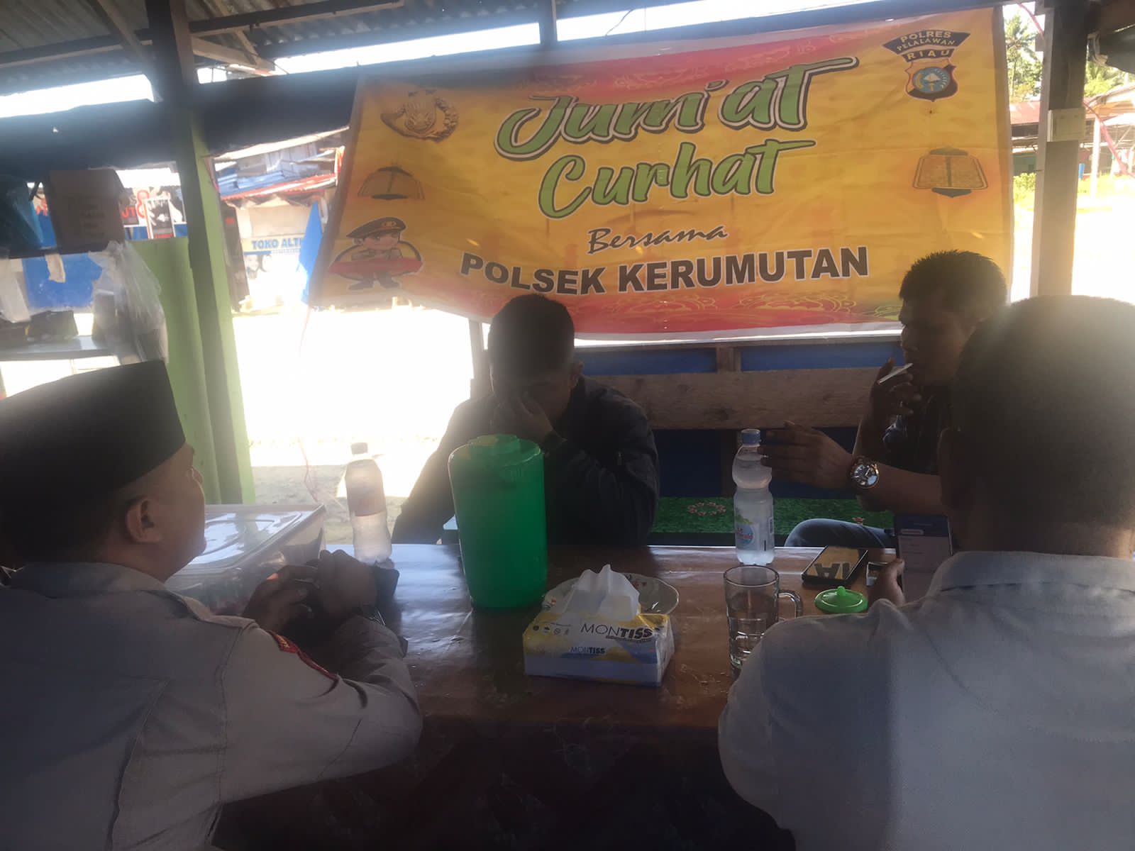 A1news.co.id | RIAU ||Kepolisian Sektor (Polsek) Kerumutan, Polres Pelalawan, melaksanakan kegiatan Jumat Curhat sebagai sarana komunikasi langsung antara polisi dan masyarakat dalam menyerap aspirasi serta keluhan terkait situasi keamanan dan ketertiban masyarakat (kamtibmas).