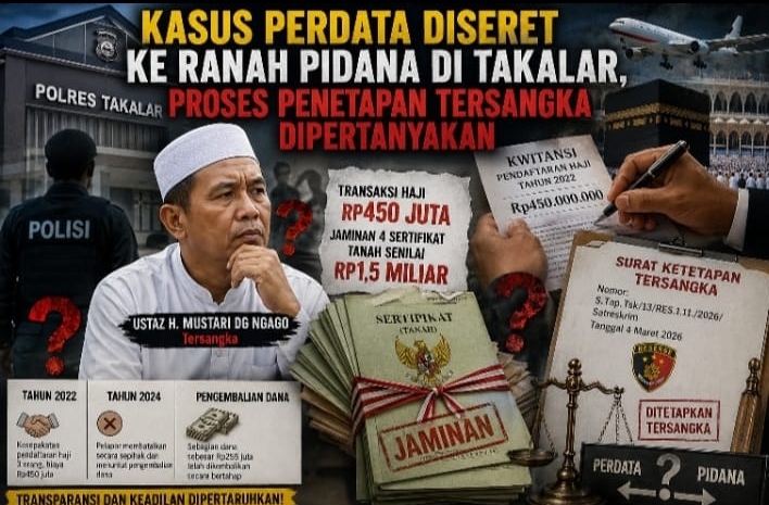 Takalar, a1news.co.id. Penanganan kasus dugaan penipuan dan/atau penggelapan di wilayah hukum Polres Takalar menuai sorotan publik. Penetapan seorang warga Makassar sekaligus mubaligh, Ustaz H. Mustari Dg Ngago, sebagai tersangka dinilai menyisakan sejumlah pertanyaan terkait transparansi dan arah penegakan hukum.