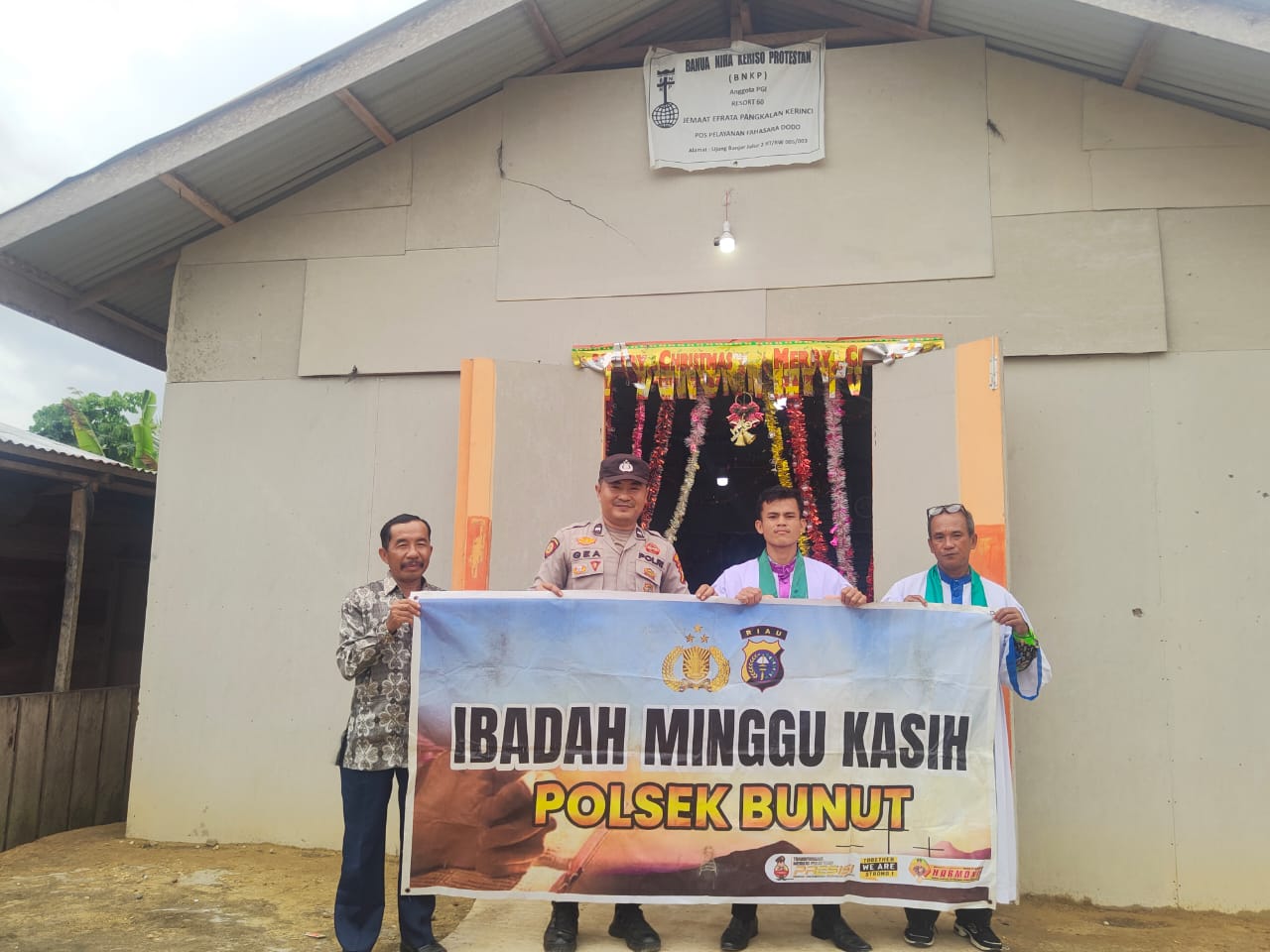 A1news.co.id | RIAU ||Polsek Bunut, Polres Pelalawan, melaksanakan kegiatan Ibadah Minggu Kasih (Minggu Harmoni) pada Minggu, 26 April 2026 sekitar pukul 11.00 WIB di Rumah Ibadah BNKP Desa Merbau, Kecamatan Bunut.