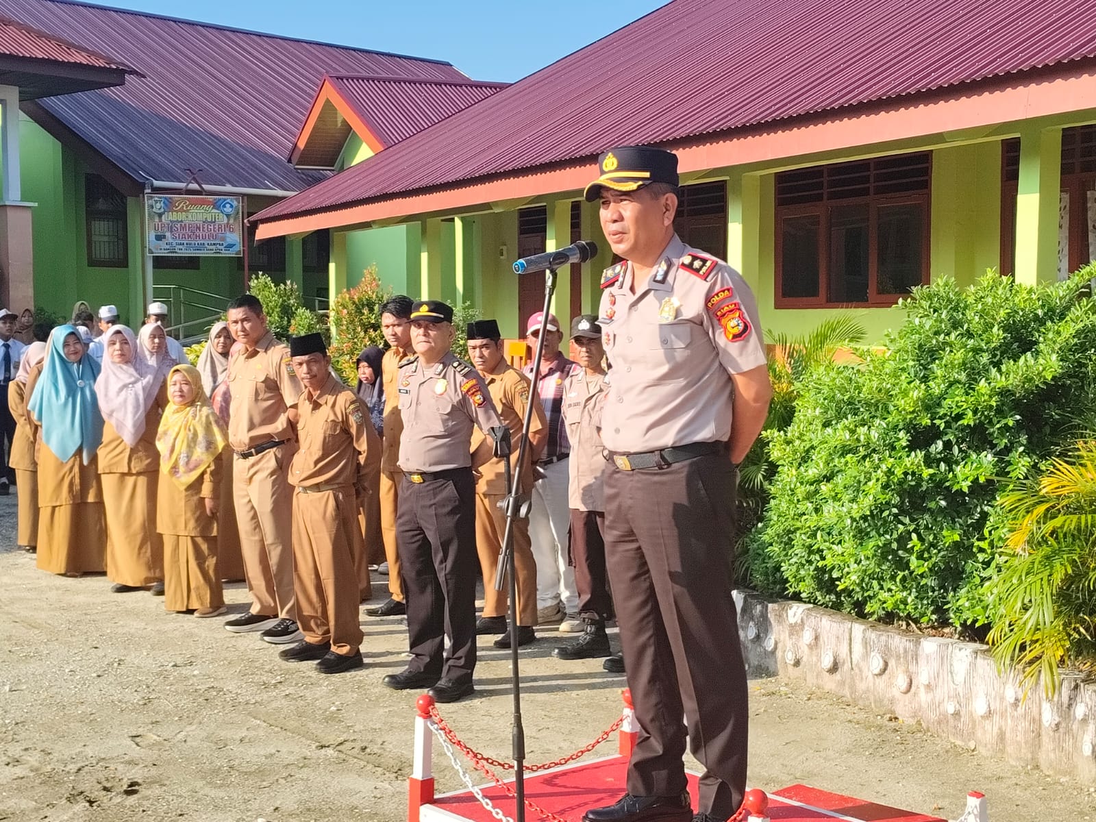 Kegiatan dihadiri langsung oleh Kapolsek Siak Hulu Kompol Deni Afrial, Panit Binmas IPTU Adi Zulfikar, Personil Bhabinkamtibmas Polsek Siak Hulu, Kepala Sekolah SMPN 6 Siak Hulu Bpk. H. Ikrom Tanjung, S.Ag., para guru, serta seluruh siswa dan siswi SMPN 6 Siak Hulu.