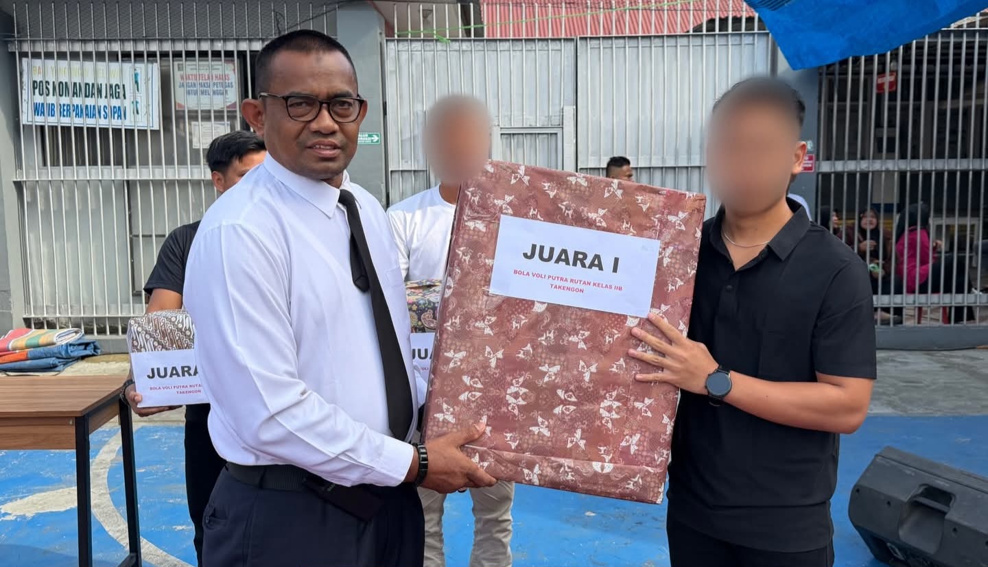 Kepala Rutan Takengon, Rusli, secara langsung menyerahkan hadiah kepada tim yang berhasil menyabet gelar Juara 1 sebagai bentuk apresiasi atas kerja keras dan sportivitas mereka.